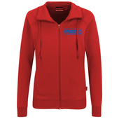 Sportliche Sweatjacke für Damen im College-Stil, mit Raglanärmeln, hochwertigem Frontreißverschluss von YKK®, formstabilen Bündchen mit LYCRA®-Anteil, Kragen mit Kordel und hochwertigen Metallösen von YKK®, Teilungsnähten mit dekorativer Flatlock-Steppung, nicht angerauter Innenseite (French-Terry), Nackenband und zwei praktischen seitlichen Einschubtaschen mit Reißverschluss. Hergestellt aus pflegeleichter Baumwolle-Polyester-Mischung für höchste Ansprüche. Gewebtes HAKRO-Necklabel aus hochwertigem Kettsatin mit weichen, ultraschallgeschnittenen Bandkanten für höchsten Tragekomfort und gewebtes HAKRO-Flaglabel an der linken Seitennaht.