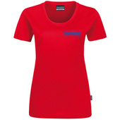 Klassisches T-Shirt für Damen mit feminin geschnittenem, rundem Halsausschnitt, modisch schmalem Bündchen und Nackenband. Hergestellt aus feinem, mittelschwerem Single-Jersey aus langstapeliger, gekämmter und ringgesponnener Baumwolle. Gewebtes HAKRO-Necklabel aus hochwertigem Kettsatin mit weichen, ultraschallgeschnittenen Bandkanten für höchsten Tragekomfort und gewebtes HAKRO-Flaglabel an der linken Seitennaht.