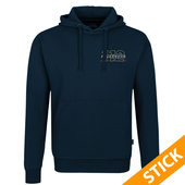 Sportives Kapuzen-Sweatshirt mit Kängurutasche, gefütterter Kapuze mit Kordel und hochwertigen Metallösen von YKK®, formstabilen Rippstrickbündchen mit LYCRA®-Anteil, flauschig angerauter Innenseite und Nackenband. Hergestellt aus pflegeleichter Baumwolle-Polyester-Mischung für höchste Ansprüche. Gewebtes HAKRO-Necklabel aus hochwertigem Kettsatin mit weichen, ultraschallgeschnittenen Bandkanten für höchsten Tragekomfort und gewebtes HAKRO-Flaglabel an der linken Seitennaht.