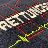 - bestickt vorne linke Brust, hinten Schulterhöhe