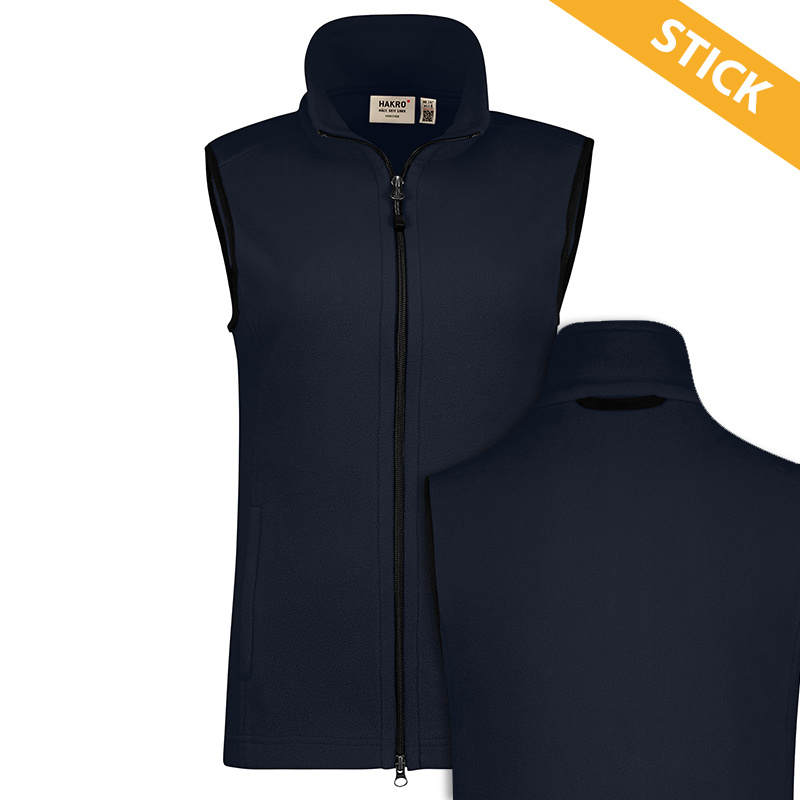 Leichte, angenehm weiche Fleeceweste ECO GRS für Damen, mit hochwertigem ZweiWege-Frontreißverschluss, seitlich verdeckten Reißverschlusstaschen, Teilungsnähten auf Vorder- und Rückenteil für perfekte Passform, Nackenband, kontrastfarbigen Einfassbändern und Aufhängeband im Nacken. Alle Reißverschlüsse von YKK®. Hergestellt aus besonders feinem, hochwertigem 200er-Microfleece, aus nach GRS-Standard zertifiziertem, recyceltem Polyester. Gewebtes HAKRO Necklabel aus hochwertigem Kettsatin mit weichen, ultraschallgeschnittenen Bandkanten für höchsten Tragekomfort und gewebtem HAKRO Looplabel am Saum.