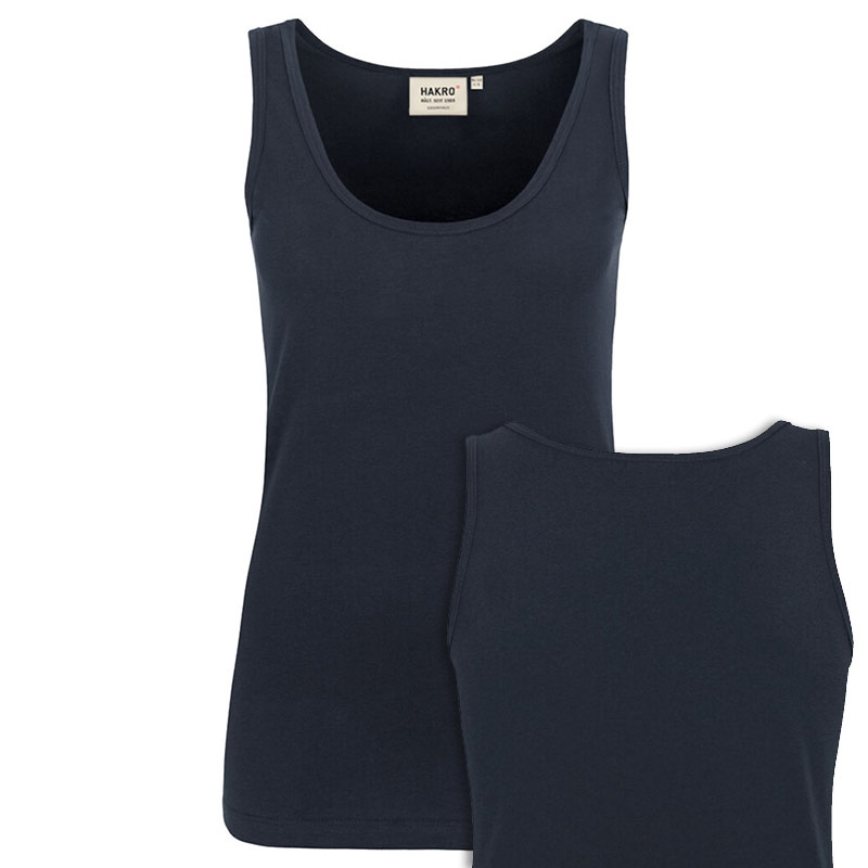 Klassisches Trägershirt für Damen, mit rundem, feminin tiefem Halsausschnitt und Nackenband. Hergestellt aus feinem, mittelschwerem Single-Jersey aus langstapeliger, gekämmter und ringgesponnener Baumwolle. Gewebtes HAKRO Necklabel aus hochwertigem Kettsatin mit weichen, ultraschallgeschnittenen Bandkanten für höchsten Tragekomfort und gewebtes HAKRO Flaglabel an der linken Seitennaht.