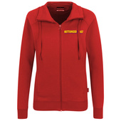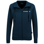 Sportliche Sweatjacke für Damen im College-Stil, mit Raglanärmeln, hochwertigem Frontreißverschluss von YKK®, formstabilen Bündchen mit LYCRA®-Anteil, Kragen mit Kordel und hochwertigen Metallösen von YKK®, Teilungsnähten mit dekorativer Flatlock-Steppung, nicht angerauter Innenseite (French-Terry), Nackenband und zwei praktischen seitlichen Einschubtaschen mit Reißverschluss. Hergestellt aus pflegeleichter Baumwolle-Polyester-Mischung für höchste Ansprüche. Gewebtes HAKRO-Necklabel aus hochwertigem Kettsatin mit weichen, ultraschallgeschnittenen Bandkanten für höchsten Tragekomfort und gewebtes HAKRO-Flaglabel an der linken Seitennaht.