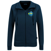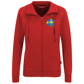 Sportliche Sweatjacke für Damen im College-Stil, mit Raglanärmeln, hochwertigem Frontreißverschluss von YKK®, formstabilen Bündchen mit LYCRA®-Anteil, Kragen mit Kordel und hochwertigen Metallösen von YKK®, Teilungsnähten mit dekorativer Flatlock-Steppung, nicht angerauter Innenseite (French-Terry), Nackenband und zwei praktischen seitlichen Einschubtaschen mit Reißverschluss. Hergestellt aus pflegeleichter Baumwolle-Polyester-Mischung für höchste Ansprüche. Gewebtes HAKRO-Necklabel aus hochwertigem Kettsatin mit weichen, ultraschallgeschnittenen Bandkanten für höchsten Tragekomfort und gewebtes HAKRO-Flaglabel an der linken Seitennaht.