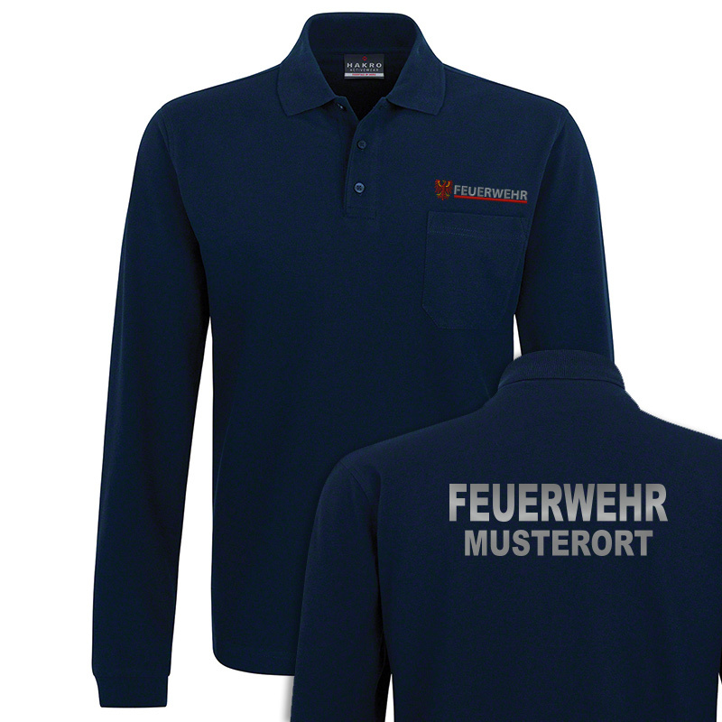 Feuerwehr Langarm Poloshirt Brandenburg mit Brusttasche
