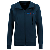 Sportliche Sweatjacke für Damen im College-Stil, mit Raglanärmeln, hochwertigem Frontreißverschluss von YKK®, formstabilen Bündchen mit LYCRA®-Anteil, Kragen mit Kordel und hochwertigen Metallösen von YKK®, Teilungsnähten mit dekorativer Flatlock-Steppung, nicht angerauter Innenseite (French-Terry), Nackenband und zwei praktischen seitlichen Einschubtaschen mit Reißverschluss. Hergestellt aus pflegeleichter Baumwolle-Polyester-Mischung für höchste Ansprüche. Gewebtes HAKRO-Necklabel aus hochwertigem Kettsatin mit weichen, ultraschallgeschnittenen Bandkanten für höchsten Tragekomfort und gewebtes HAKRO-Flaglabel an der linken Seitennaht.