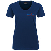 Klassisches T-Shirt für Damen mit feminin geschnittenem, rundem Halsausschnitt, modisch schmalem Bündchen und Nackenband. Hergestellt aus feinem, mittelschwerem Single-Jersey aus langstapeliger, gekämmter und ringgesponnener Baumwolle. Gewebtes HAKRO-Necklabel aus hochwertigem Kettsatin mit weichen, ultraschallgeschnittenen Bandkanten für höchsten Tragekomfort und gewebtes HAKRO-Flaglabel an der linken Seitennaht.