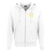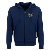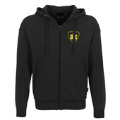 Sportive Kapuzen-Sweatjacke mit hochwertigem Reißverschluss von YKK®, gefütterter Kapuze mit Kordel und hochwertigen Metallösen von YKK®, formstabilen Rippstrickbündchen mit LYCRA®-Anteil, nicht angerauter Innenseite (French-Terry), Einschubtaschen und Nackenband. Hergestellt aus pflegeleichter Baumwolle-Polyester-Mischung für höchste Ansprüche. Gewebtes HAKRO-Necklabel aus hochwertigem Kettsatin mit weichen, ultraschallgeschnittenen Bandkanten für höchsten Tragekomfort und gewebtes HAKRO-Flaglabel an der linken Seitennaht.