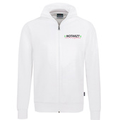Sportive Sweatjacke mit hochwertigem Frontreißverschluss von YKK®, formstabilen Bündchen mit LYCRA®-Anteil, Raglanärmeln, Teilungsnähten mit dekorativer Flatlock-Steppung, nicht angerauter Innenseite (French-Terry), Nackenband und zwei praktischen seitlichen Einschubtaschen. Hergestellt aus pflegeleichter Baumwolle-Polyester-Mischung für höchste Ansprüche. Gewebtes HAKRO-Necklabel aus hochwertigem Kettsatin mit weichen, ultraschallgeschnittenen Bandkanten für höchsten Tragekomfort und gewebtes HAKRO-Flaglabel an der linken Seitennaht.